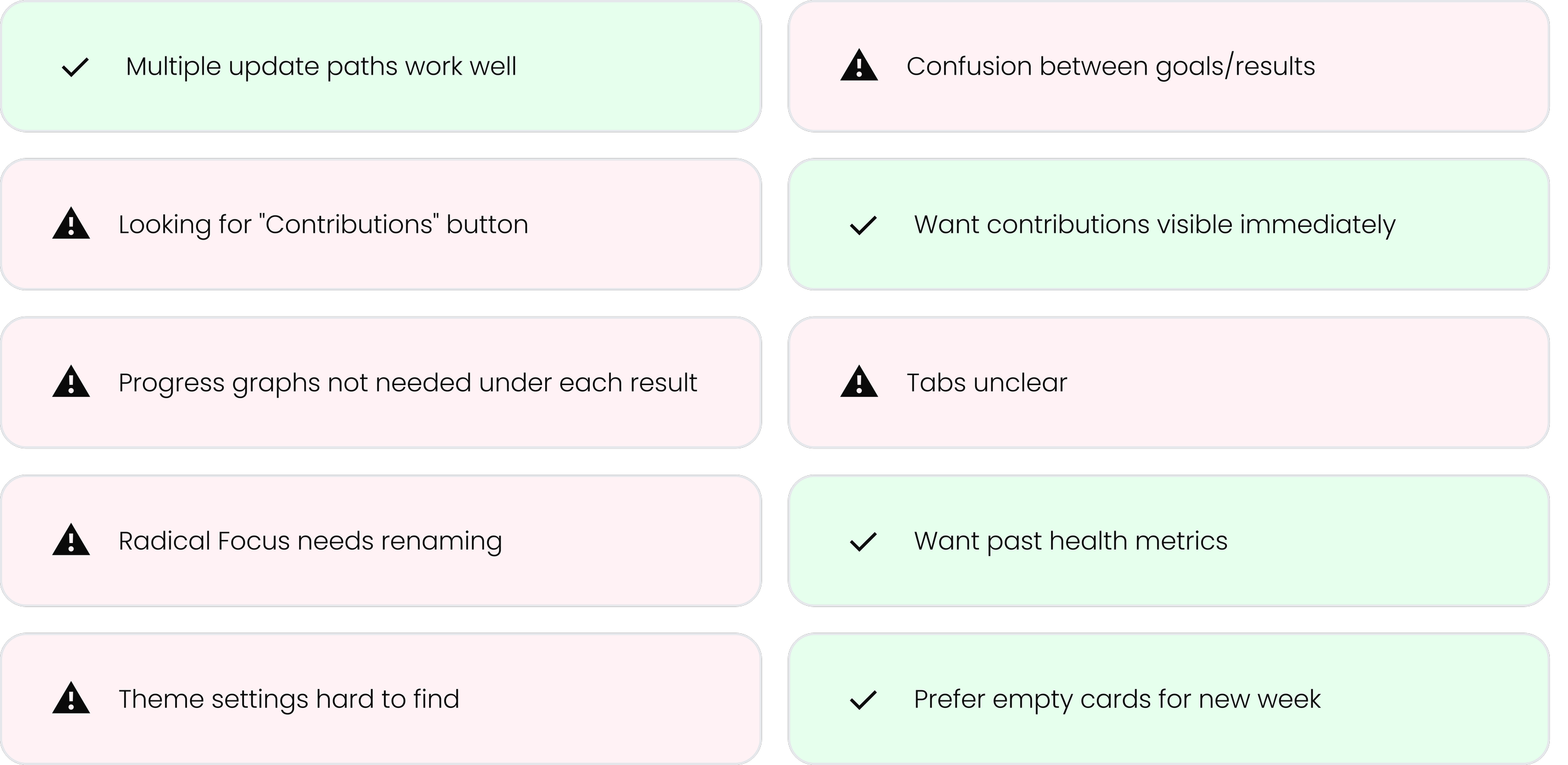 A set of core use cases—centered around team-owned goals, weekly reflection, and lightweight team identity—and a shared understanding that version 1 needed clarity, not complexity.