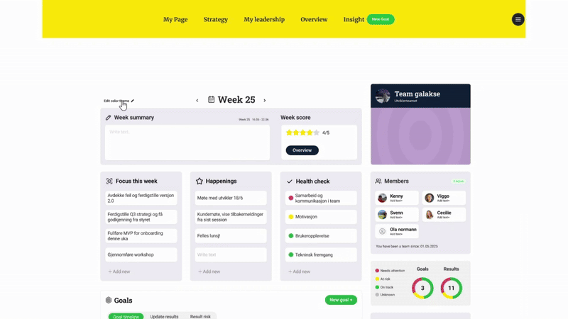 Customizable card labels (e.g., “This week’s focus” → “This week’s contributions”) can increase usefulness across teams.