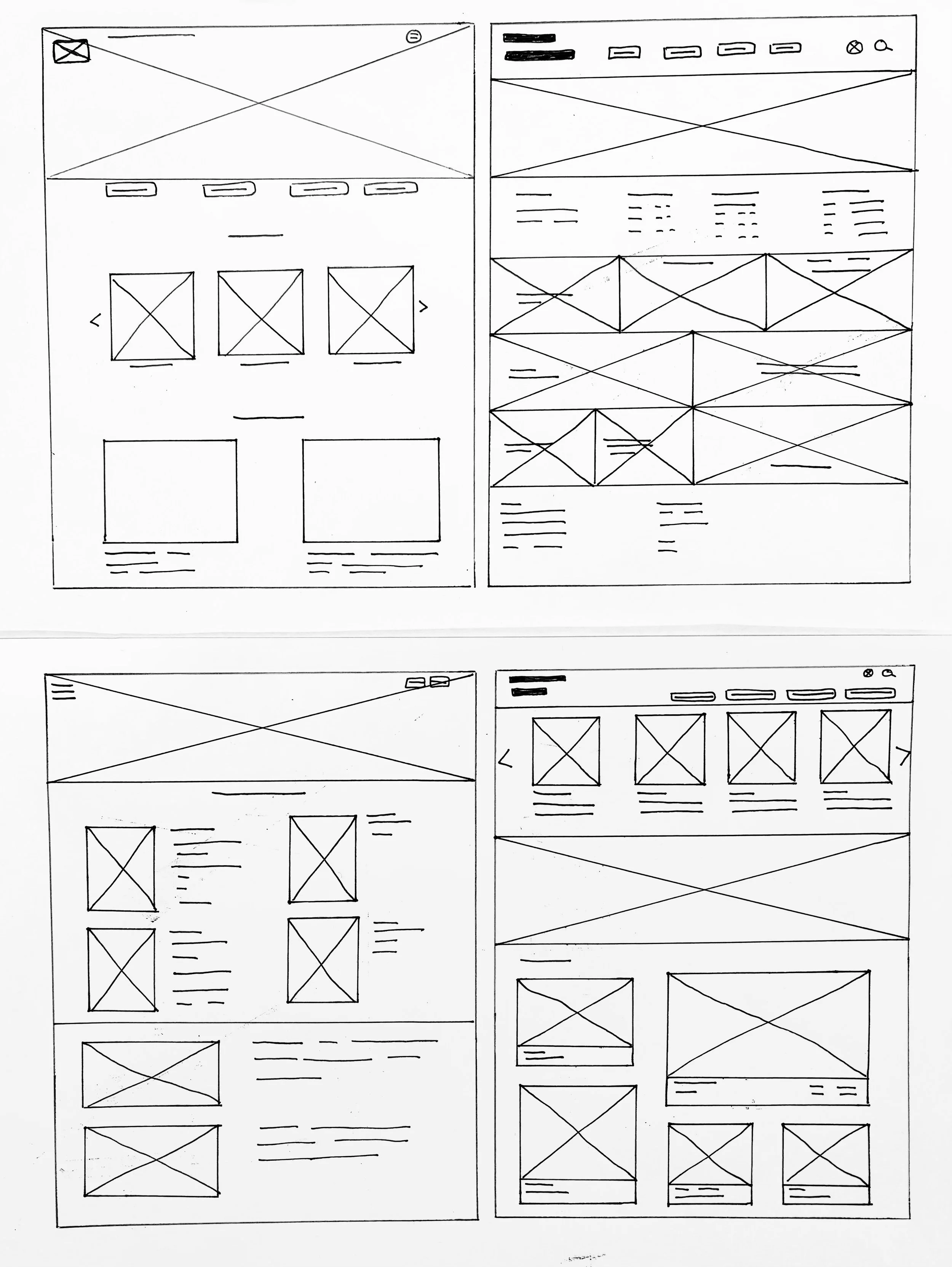 I sketched out paper wireframes for my homepage, both for the desktop screen and the mobile screen. I used what I liked the most from each wireframe to create a refined digital wireframe.