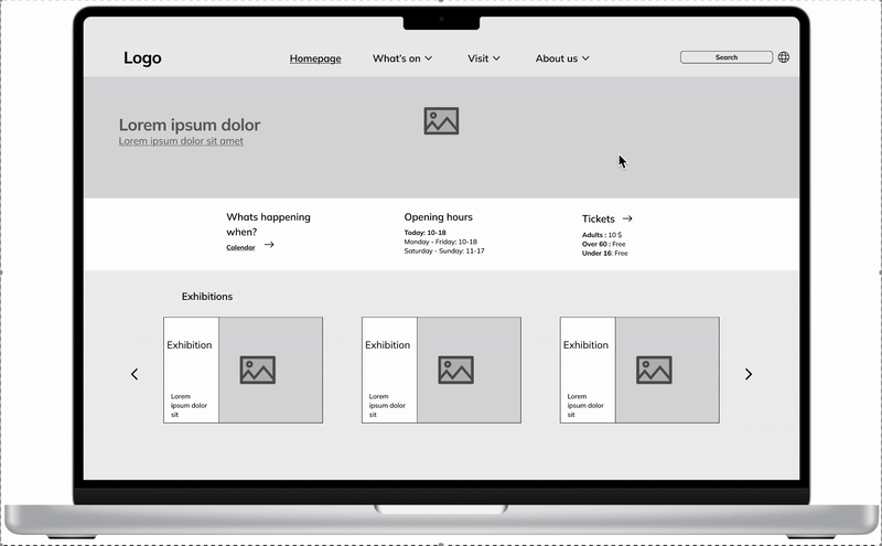 I discovered that museum websites have a wide range of users in different age groups who have very different needs. I therefore wanted to make a design that was easy to use with clear and simple paths to the goal.